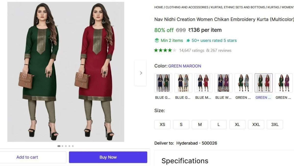 🔥 Women Chikan Embroidery Kurta @ ₹129