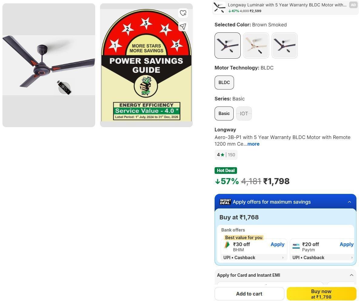 BLDC Cooling Deals Starts @ ₹1798 1798 : 1999 : 259