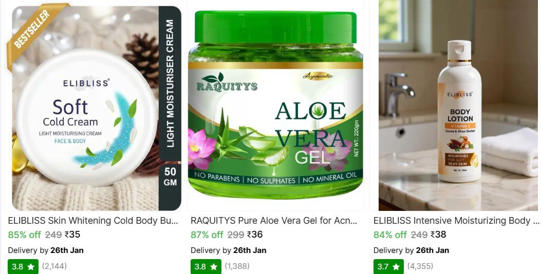 Shopsy Loot Deals๐ Body Lotions from โน31 ๐ Earpho