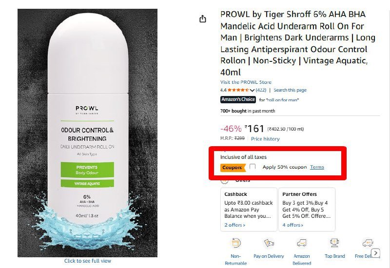 LOOT - Underarm Roll On @ ₹80 👉 Apply 50% Off Coupon