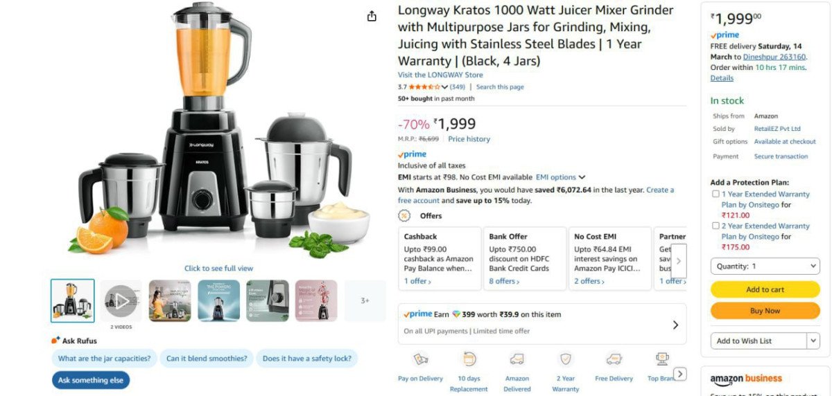 Before purchasing, it is recommended to review detailed specifications, compatibility details, size or variant availability, and seller-provided information. Shipping terms and return policies may vary depending on the merchant.