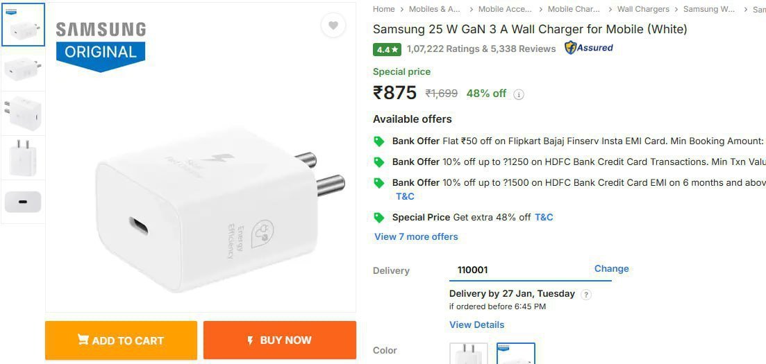 🔥🔥 799₹ Samsung Original 25W USB Type-C Travel Adap