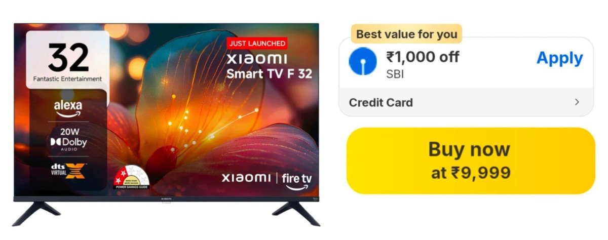 🔥Xiaomi 32inch Smart TV at ₹9,999 👉 ✅Flat ₹100