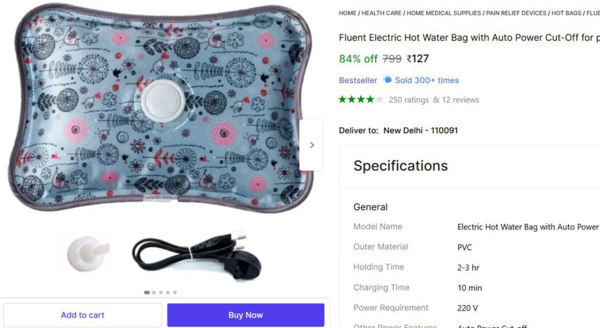 Electric Hot Water Bag at ₹151 Auto Power Cut-Off