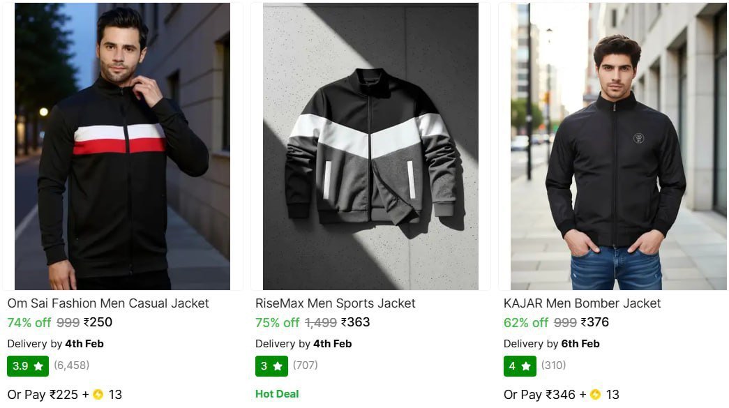Shopsy: Lowest Price Guaranteed Men's Jacket Under @299 �