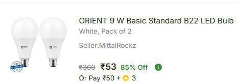 Flipkart Loot | 85% Off - Orient 9 w Led Buld At Rs.53 Reg
