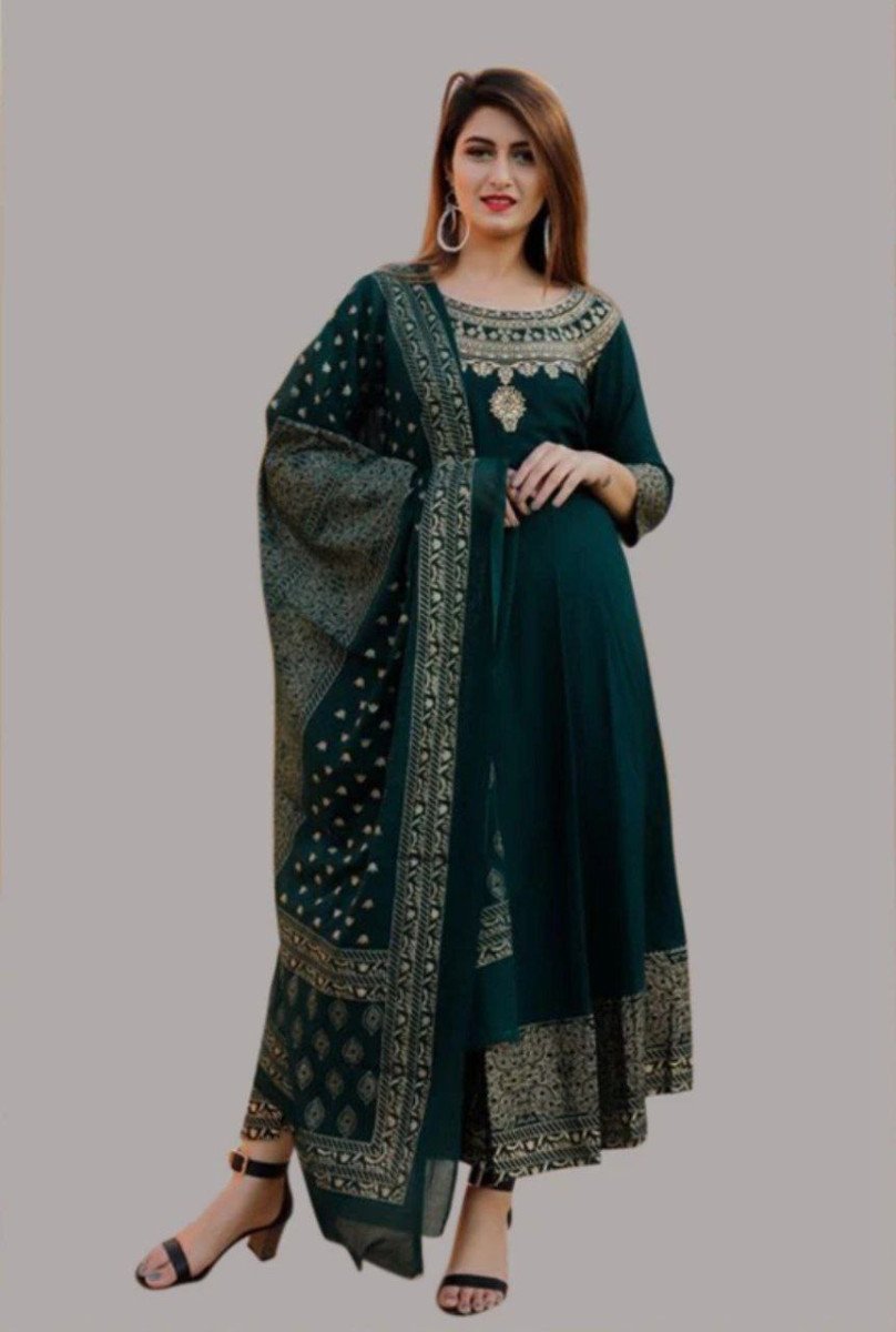 🔥🔥Women Printed Cotton Blend Anarkali Kurta With Attac