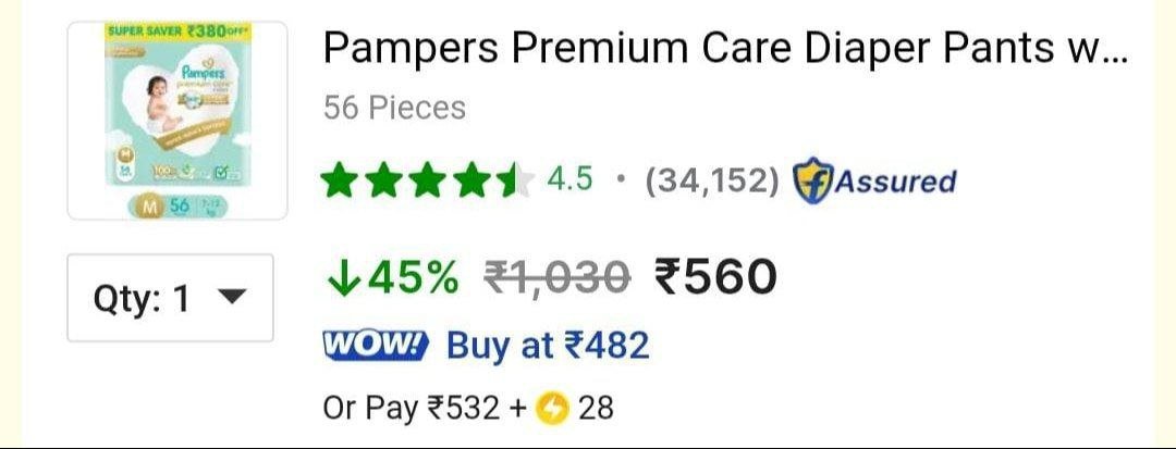 GRAB : Upto 72% Off on Pampers Premium Baby Diapers Limited