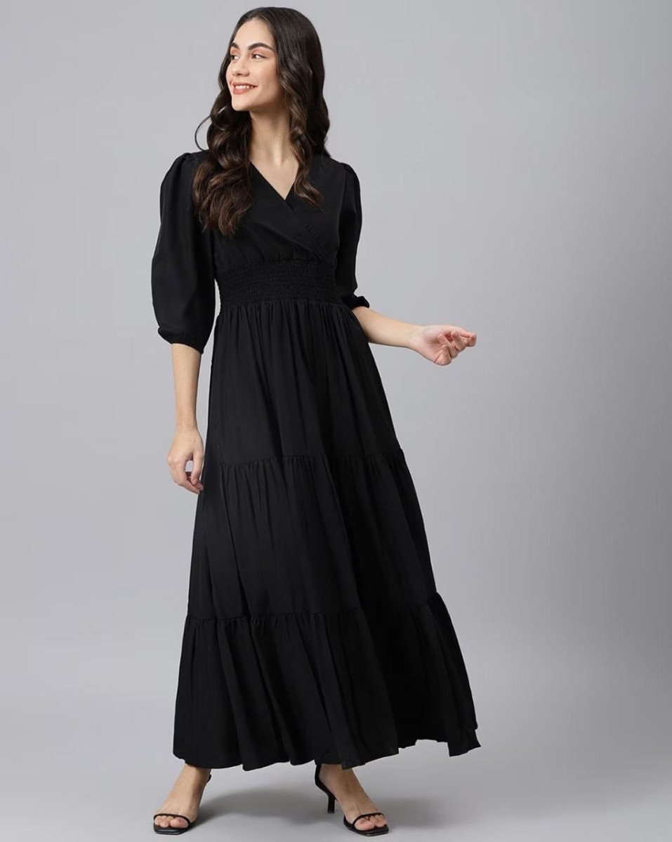 FEMVY V-Neck Tiered Dress with Smocked Waist