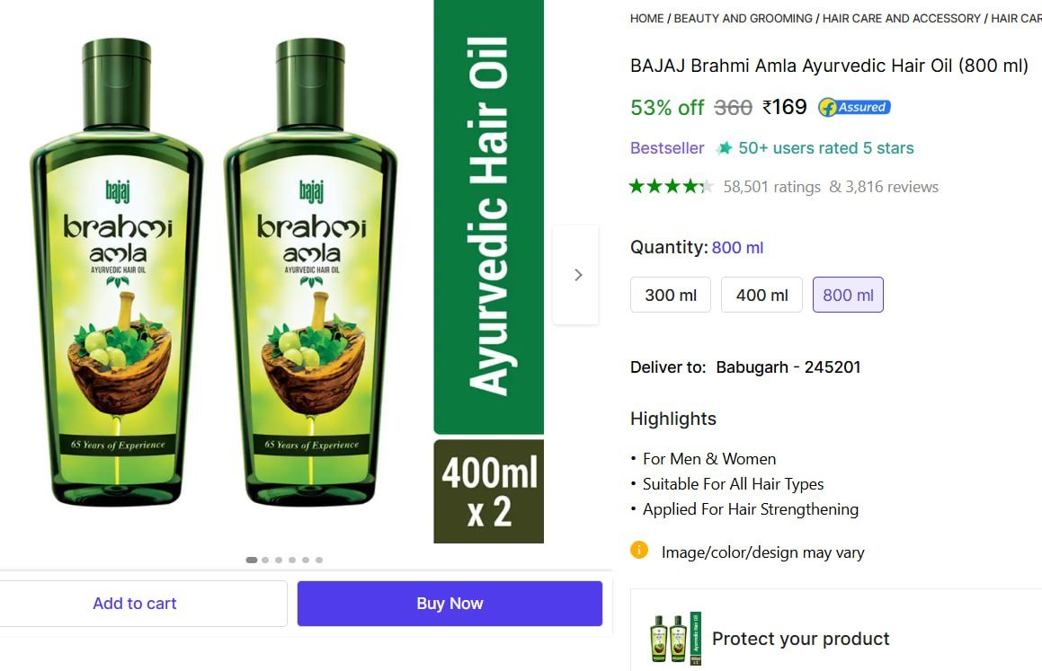🔥 BAJAJ Amla Hair Oil (800 ml) @ ₹169