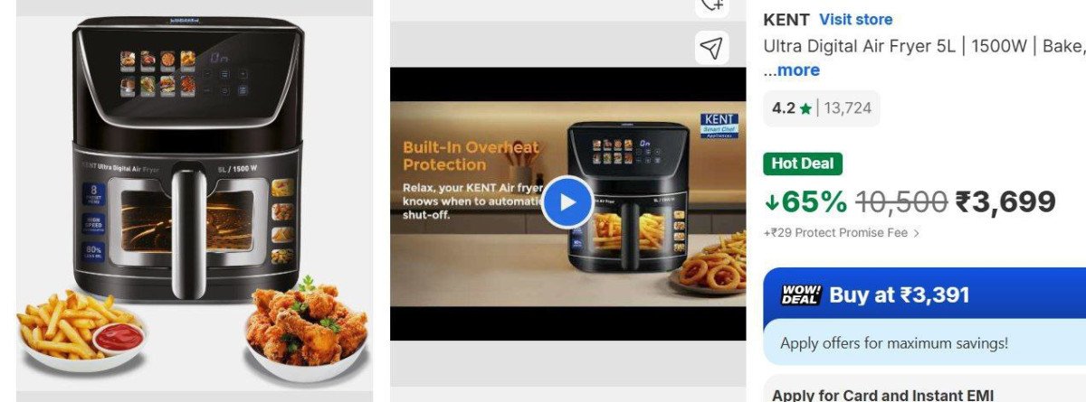 Flipkart | 66% Off - KENT Air Fryer 5L At Rs.3699