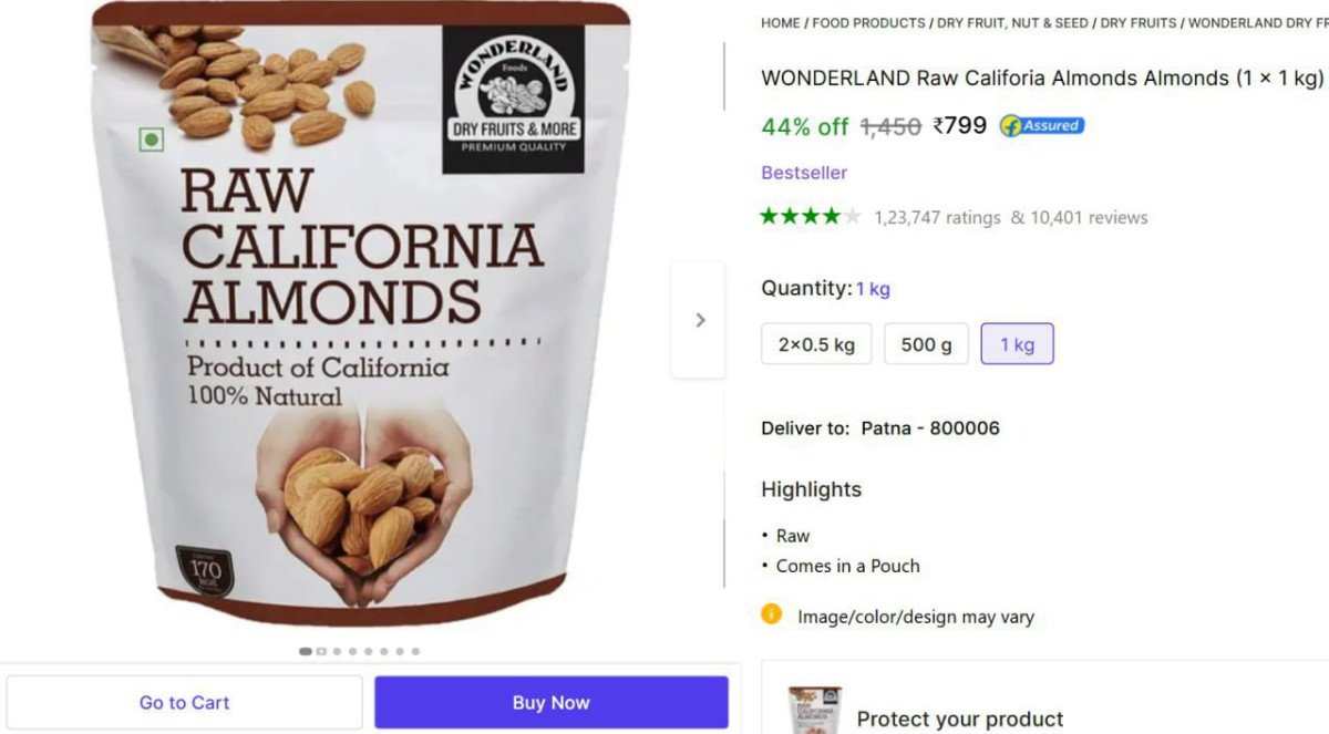 Wonderland California Almonds, 1Kg @ ₹799.